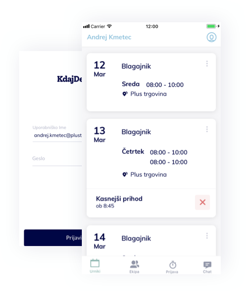 Ročno seštevanje delovnih ur in vodenje dopustov zahteva preveč vašega časa. Naj to delo za vas opravi aplikacija. Zaposleni se prijavijo in odjavijo na delovno mesto, tako v poslovni enoti kot na terenu (pri strankah ali na delovišču), kar preko aplikacije.